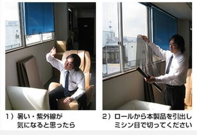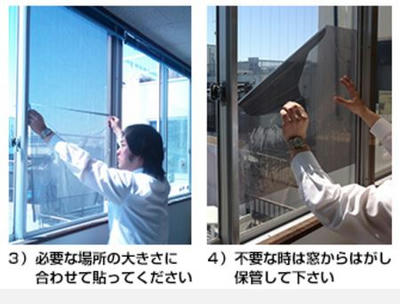 今すぐ木陰 暑い日差しを防ぐ。窓ガラスに貼れます。また、すぐにはがせます。ちょっとここだけ暑いな~と思ったときにサッと貼れる便利遮光シートです。